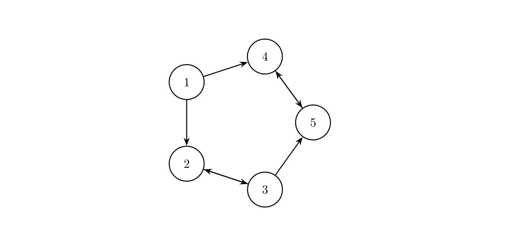 编号为 \(2\) 的奶牛输给了编号为 \(1, 3, 4\) 的奶牛,也就是说她的水平比这 \(3\) 头奶牛都差。而编号为 \(5\) 的奶牛又输在了她的手下,也就是说,她的水平比编号为 \(5\) 的奶牛强一些。于是,编号为 \(2\) 的奶牛的排名必然为第 \(4\),编号为 \(5\) 的奶牛的水平必然最差。其他 \(3\) 头奶牛的排名仍无法确定。